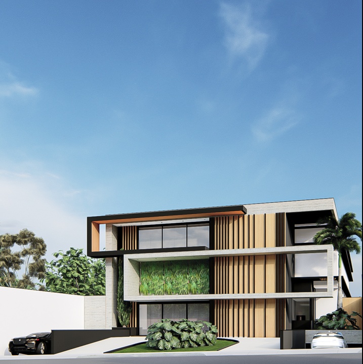 1256,70m² de terreno, sendo 1993,75m² de construção. O projeto arquitetônico desta edificação de alto padrão foi concebido para abrigar uma clínica médica ou centro de saúde sofisticado, transmitindo modernidade, seriedade e bem-estar. A volumetria é marcada por recortes e diferentes pavimentos que criam um jogo dinâmico de luz e sombra. Grandes molduras brancas envolvem os andares, destacando os elementos de preenchimento e reforçando a identidade visual. O volume superior, em preto fosco, adiciona contraste e elegância à composição.