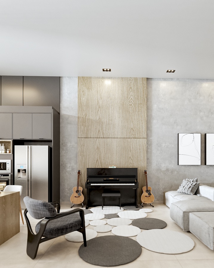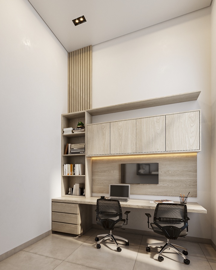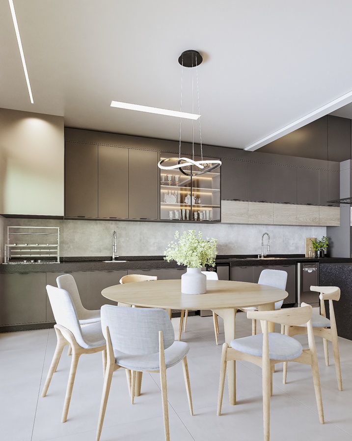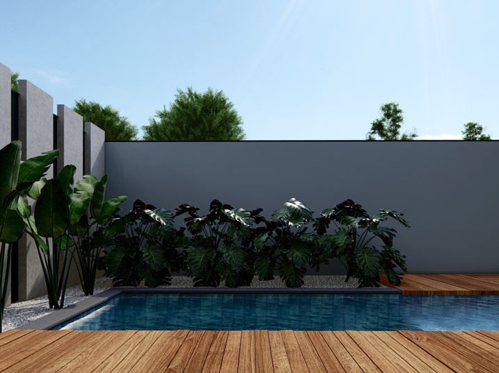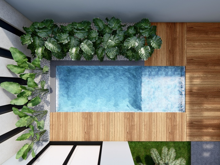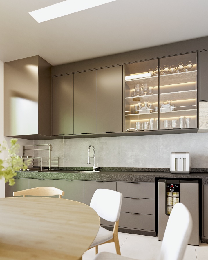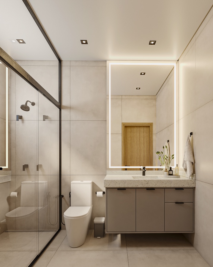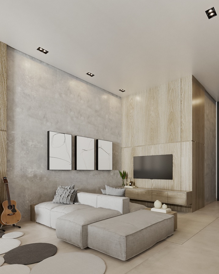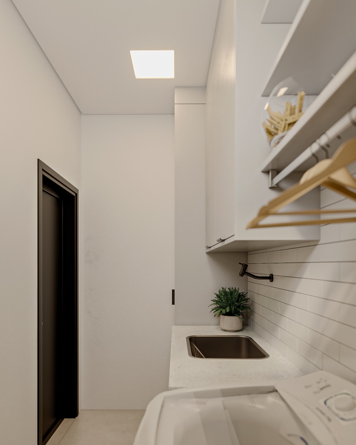 345,45m² de terreno, sendo 191,36m² de construção. A fachada frontal estabelece um visual forte e elegante. A residência exibe um design de linhas retas e volumes bem definidos, característico da arquitetura contemporânea. O contraste entre as cores escuras (como o grafite e preto) e as superfícies claras (revestimento em pedra e paredes brancas) confere profundidade e sofisticação. O revestimento em pedra rústica em parte da fachada é um destaque, adicionando textura e calor, suavizando o rigor das formas geométricas.