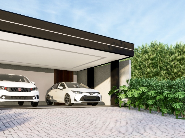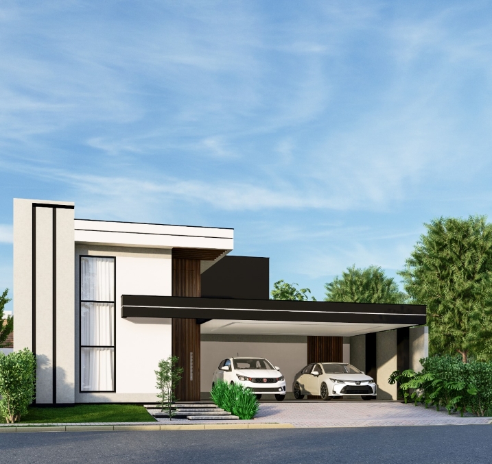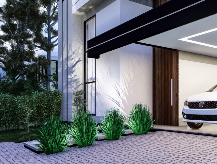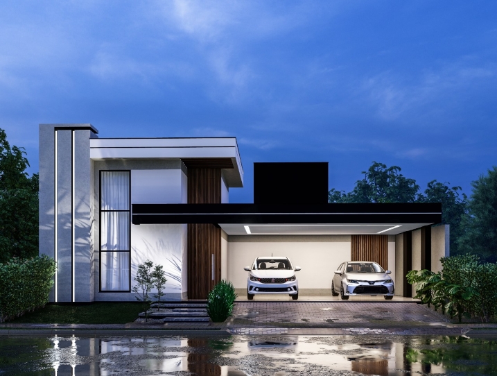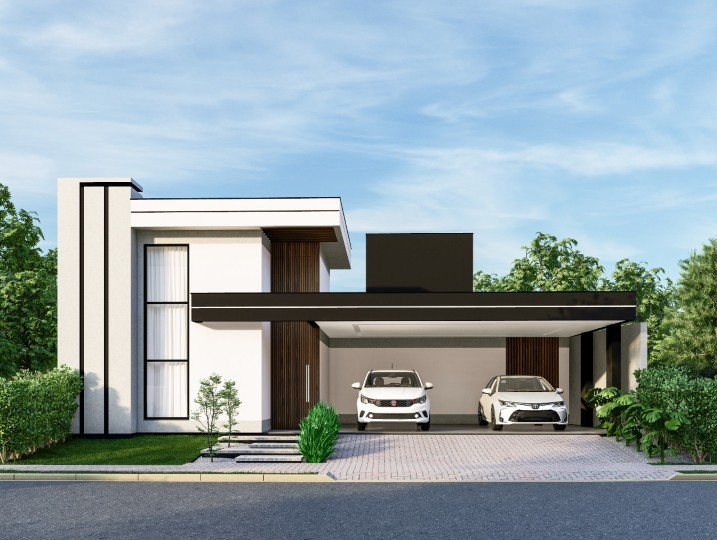 310,28m² de terreno, sendo 179,83m² de construção. Projeto que equilibra linhas retas e materiais naturais para criar ambientes sofisticados e acolhedores. Há um uso equilibrado de diferentes revestimentos, como a pedra bruta em parte da fachada, que se estende para os ambientes internos da casa, em contraste com uma base neutra, deixando aconchegante sem pesar.